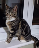 Tabby and white female, 10-11 months old.